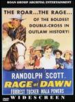 Since lapsing into public domain, Rage at Dawn has become one of the most readily available of Randolph Scotts westerns. Based on the exploits of the infamous Reno gang, the film casts Scott as a federal agent assigned to squelch the Renos once and for all. After staging a few phony train robberies, Scott is accepted into the gang. While posing as a criminal, he discovers that the Renos are able to operate freely because theyve paid off several important local officials. Once hes managed to round up the surviving gang members, Scott must contend with a self-righteous lynch mob led by Howard Petrie. Mala Powers is the leading lady in Rage at Dawn, while the dreaded Reno boys are convincingly enacted by J. Carroll Naish, Forrest Tucker, Myron Healey and Denver Pyle. ~ Hal Erickson, All Movie Guide
